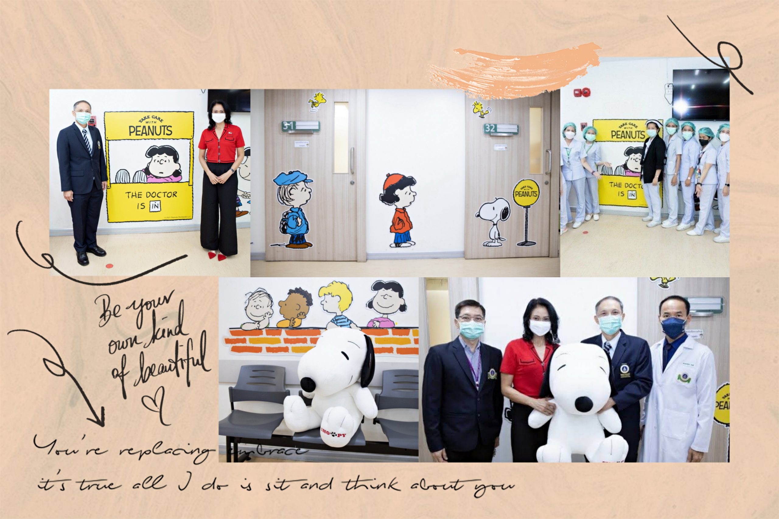 ตลอดระยะเวลากว่า 70 ปีที่ Peanuts และตัวการ์ตูนผลงานของ Charles Schulz ได้สื่อถึงความรัก ความห่วงใย กับเด็กและผู้ใหญ่ทั่วโลก สำหรับในประเทศไทย แคมเปญ Take Care with Peanuts ได้รับความร่วมมือร่วมอย่างดี กับ โรงพยาบาลรามาธิบดี ซึ่งเป็นโรงพยาบาลชั้นนำที่ให้บริการทางการแพทย์ในระดับแนวหน้าของโลก โดยได้แรงบันดาลใจมาจากกิจกรรมที่ทาง Peanuts ร่วมมือกับ Foundation of Hospital Art (FFHA) ในการส่งต่อภาพวาด Snoopy และ Woodstock ที่คนไข้และบุคลากรทางการแพทย์ได้ร่วมกันวาดขึ้น และส่งต่อให้กับ 70 โรงพยาบาลใน 6 ทวีปทั่วโลก เช่น ปักกิ่ง โบโกตา เคปทาวน์ ฝรังเศส เกาหลี โตรอนโต และอีกหลายเมืองในสหรัฐอเมริกา