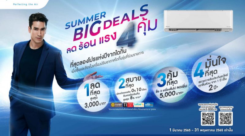 เลือกซื้อและติดตั้งเครื่องปรับอากาศไดกิ้น พร้อมที่สุดของโปรแห่งปีจากไดกิ้น “Summer Big Deals” ลด ร้อน แรง 4 คุ้ม ได้แล้วตั้งแต่วันที่ 1 มีนาคม 2565 – 31 พฤษภาคม 2565 นี้ ที่ตัวแทนจำหน่ายสินค้าไดกิ้นทั่วประเทศ และ Daikin Marketplace คลิก https://shop.daikin.co.th/ หรือสอบถามรายละเอียดเพิ่มเติมเกี่ยวกับ “ไดกิ้น” (Daikin) ได้ทาง Daikin Cool Line เบอร์ 1271 โดยเปิดให้บริการทุกวันตั้งแต่เวลา 07.00 ถึง 24.00 น. หรือค้นหาตัวแทนจำหน่ายดีลเลอร์ไดกิ้นได้ที่ https://www.daikin.co.th/wheretobuy