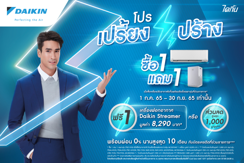 มร. ไดสุเกะ มุราคามิ ผู้จัดการใหญ่ บริษัท สยามไดกิ้นเซลส์ จำกัด เผยว่า “ในช่วงไตรมาส 2 ที่ผ่านมา ไดกิ้น ได้จัดโปรโมชั่นในช่วงหน้าร้อนเพื่อกระตุ้นการจับจ่ายใช้สอยในกลุ่มแอร์ และเครื่องฟอกอากาศซึ่งได้รับผลตอบรับที่ดีเยี่ยมจากผู้บริโภคทั้งในกรุงเทพฯ และต่างจังหวัดเป็นอย่างมาก และเพื่อสร้างความต่อเนื่องในการมอบความคุ้ม พร้อมคืนกำไรให้กับผู้บริโภค ไดกิ้น ได้อัดแคมเปญโปรโมชั่น โปรเปรี้ยงปร้าง ในช่วงหน้าฝนขึ้น ตั้งแต่วันที่ 1 ก.ค. 65 – 30 ก.ย. 65 เมื่อซื้อแอร์ไดกิ้น รับฟรี!เครื่องฟอกอากาศ ไดกิ้น สตรีมเมอร์ หรือรับส่วนลดสูงสุด 1,000 บาท พร้อมรับความคุ้มผ่อนสบาย ๆ 0% นานสูงสุด 10 เดือนกับบัตรเครดิตที่ร่วมรายการ”