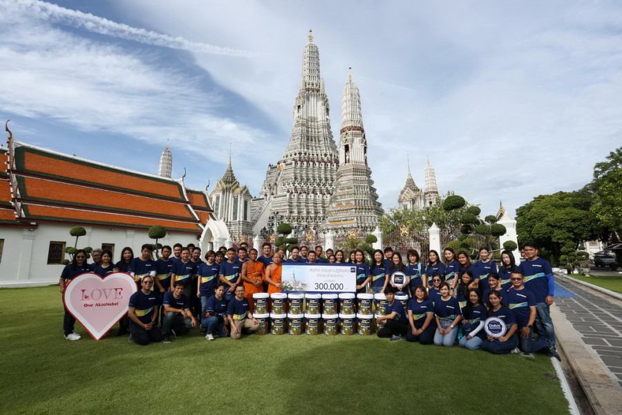 พนักงานอั๊คโซ่ โนเบล รวม 50 คน ร่วมกันทาสีเพื่อเพิ่มความสดใสด้วยผลิตภัณฑ์สีพรีเมี่ยมทาภายนอก ดูลักซ์เวเธ่อร์ชีลด์ อัลติมา แอดวานซ์ สีขาวและสีทองดูลักซ์ บริลเลียนซ์โกลด์ รวมถึงสีน้ำมันซูเปอร์โคท เฉดสีดั้งเดิมภายใต้คำแนะนำของกรมศิลปากร เพื่อคงความงามของโบราณสถานสำคัญที่สร้างมาแต่ครั้งสมัยอยุธยา โดยการบริจาคสีครั้งนี้มูลค่ารวม 300,000 บาท