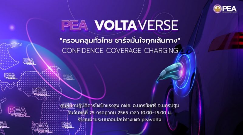 การไฟฟ้าส่วนภูมิภาค หรือ PEA โดย นายศุภชัย เอกอุ่น ผู้ว่าการการไฟฟ้าส่วนภูมิภาค เตรียมจัดงาน “PEA VOLTAVERSE: ครอบคลุมทั่วไทย ชาร์จมั่นใจทุกเส้นทาง” ในรูปแบบออนไลน์ โดยได้รับเกียรติจาก นายสุทธิพงษ์ จุลเจริญ ปลัดกระทรวงมหาดไทย เป็นประธาน ในวันจันทร์ที่ 25 กรกฏาคม 2565 เวลา 10.00 – 15.00 น. เพื่อมุ่งเน้นการปรับรูปแบบเข้าสู่ Landscape ใหม่ และพลิกองค์กรสู่การเป็น Digital Utility ที่ครอบคลุมการดำเนินงานทุกด้าน โดยประกาศความเป็นผู้นำธุรกิจให้บริการด้านยานยนต์ไฟฟ้าชั้นนำระดับประเทศ พร้อมเดินหน้าพัฒนาฟีเจอร์ใหม่ล่าสุด AUTOCHARGE เป็นรายแรกของเมืองไทย