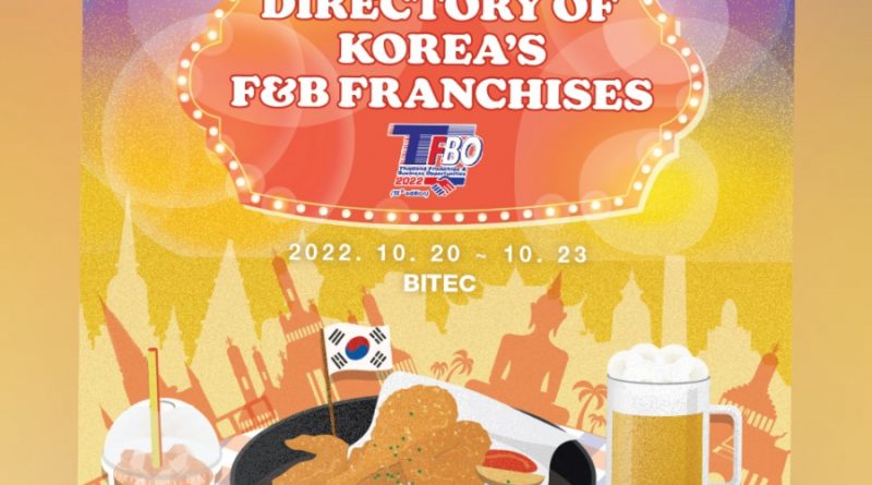 aT (Korea Agro-Fisheries & Food Trade Corporation) หรือ องค์กรการค้าการเกษตรกรรมและการประมงของประเทศเกาหลี เตรียมเข้าร่วมงานแสดงแฟรนไชส์นานาชาติและโอกาสทางธุรกิจ (TFBO2022-Thailand Franchise&Business Opportunities 2022) ครั้งที่ 18 ในส่วนของ Korean Pavilion – Korea’s F&B Franchises ซึ่งจะจัดขึ้นที่ ไบเทค บางนา ตั้งแต่วันที่ 20 – 23 ตุลาคม 2565