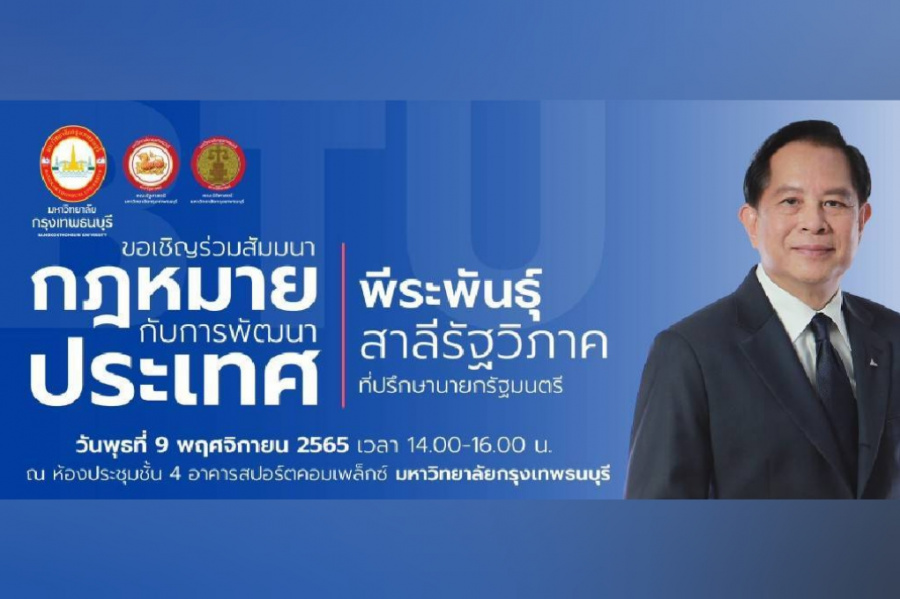 ม.กรุงเทพธนบุรี เชิญ “พีระพันธุ์ สาลีรัฐวิภาค” เสวนาพิเศษหัวข้อ “กฎหมายกับการพัฒนาประเทศ” 9 พ.ย.นี้