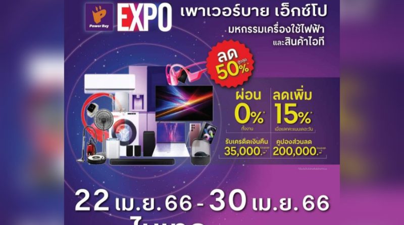 สำหรับไฮไลท์ สำคัญในการจัดงานมหกรรมเครื่องใช้ไฟฟ้า “Power Buy Expo” ในครั้งนี้ นอกจากเครื่องใช้ไฟฟ้า จะมีสินค้าไอที และอุปกรณ์อิเล็กทรอนิกส์ จากแบรนด์ขั้นนำมากกว่า 20 แบรนด์ ที่ได้รับการคัดสรรมาอยู่ในงานมากกว่า 1,000 รายการ ซึ่งช่วยตอบโจทย์การใช้ชีวิตให้กับทุกคนแล้วได้เป็นอย่างดีแลว “ภายในงาน ยังมีโปรโมชั่นสุดพิเศษ รวมถึงส่วนลดสินค้าเครื่องใช้ไฟฟ้าอีกมากกว่า 50% ที่มาพร้อมข้อเสนอและสิทธิพิเศษ ทั้งในส่วนของ บริการหลังการขาย และ บริการจัดส่งสินค้าถึงบ้านโดยไม่เสียค่าใช้จ่ายใดๆ ไปจนถึงการผ่อนชำระค่าสินค้า 0% จากบัตรเครดิตที่ร่วมรายการ ตลอดจนการรับเครดิตเงินคืนสูงสุด 35,000 บาท และ ลุ้นรับคูปองส่วนลดสำหรับซื้อสินค้าเพาเวอร์บาย มูลค่ารวมกว่า 200,000 บาท