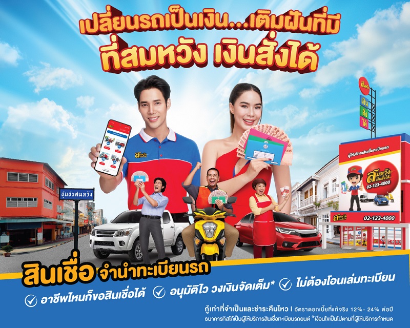 นายศุภชัย กล่าวเสริมว่า สมหวัง เงินสั่งได้ ตั้งใจถ่ายทอดคาแรคเตอร์ของแบรนด์ที่คอยเคียงข้างคนไทยในยามที่ขัดสน ช่วยเหลือให้ทุกคนทุกอาชีพได้เข้าถึงสินเชื่อในระบบพร้อมกับบริการอย่างมืออาชีพ และยังเป็นอีกหนึ่งกำลังที่จะช่วยขับเคลื่อนความฝัน ทั้งเป็นกำลังใจให้ทุกคนมีโอกาสทำตามความฝันของตัวเองได้สำเร็จและ “สมหวัง” หากประสบปัญหาขาดสภาพคล่องทางการเงิน ไม่ว่าอาชีพไหนก็ขอสินเชื่อได้ อนุมัติไว วงเงินจัดเต็ม* ไม่ต้องโอนเล่มทะเบียน ผู้ที่สนใจขอสินเชื่อจำนำทะเบียนรถ สามารถติดต่อได้ที่ สมหวัง เงินสั่งได้ ทุกสาขาทั่วประเทศ สอบถามรายละเอียดเพิ่มเติม โทร. 02 123 4000 / LINE Official @Somwang หรือ www.somwang.co.th