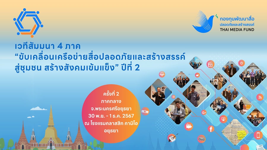 กองทุนพัฒนาสื่อปลอดภัยและสร้างสรรค์ เดินหน้าจัดต่อเนื่อง เวทีสัมมนา 4 ภาคฯ ปักหมุดอยุธยา สร้างเครือข่ายสื่อชุมชนภาคกลางให้เข้มแข็ง