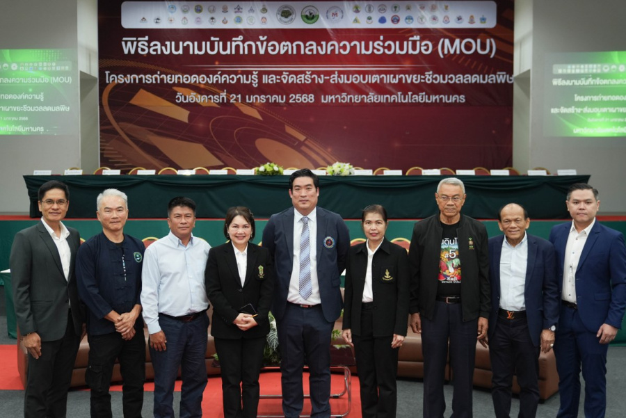 กรุงเทพฯ, 21 มกราคม 2568 – รองศาสตราจารย์ ดร.ภานวีย์ โภไคยอุดม อธิการบดีมหาวิทยาลัยเทคโนโลยีมหานคร (มทม.) ในฐานะประธานคณะขับเคลื่อนการมีส่วนร่วมเพื่อการพัฒนาเขตหนองจอก (คคพ.เขตหนองจอก) จัดพิธีลงนามบันทึกข้อตกลงความร่วมมือ (MOU) โครงการถ่ายทอดองค์ความรู้และจัดสร้าง-ส่งมอบเตาเผาขยะชีวมวลลดมลพิษ ระหว่าง คคพ.เขตหนองจอก กับโรงเรียนเครือข่ายในสังกัดกรุงเทพมหานคร เขตหนองจอก จำนวน 37 แห่ง โดยมี นางสาวยุวนุช นงพรมมา ผู้อำนวยการเขตหนองจอก ร่วมเป็นสักขีพยาน พร้อมด้วย นายวรเกียรติ สุจิวโรดม ‘นักธุรกิจเจ้าของชาวนามหานคร’ประธานเครือข่ายกสิกรรมธรรมชาติ และหัวหน้าโครงการถ่ายทอดองค์ความรู้และจัดสร้าง-ส่งมอบเตาเผาขยะชีวมวลลดมลพิษ อาจารย์โกศล แสงทอง ผู้นำเสนอแนวคิดนำเตาเผาขยะชีวมวลลดมลพิษมาใช้ และผู้อำนวยการสถานศึกษา คณะครู และนักเรียน จากโรงเรียนเครือข่ายในสังกัดกทม. เขตหนองจอก ตลอดจนคณะกรรมการ คคพ.เขตหนองจอก กว่า 400 คน เข้าร่วมงาน ณ ห้อง Auditorium ชั้น 5 อาคาร MIIX มหาวิทยาลัยเทคโนโลยีมหานคร
