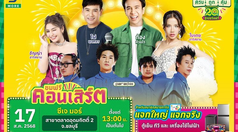 ซีเจ มอร์ พร้อมขนทัพศิลปิน นำโดย ก้อง-ห้วยไร่ และ ไผ่-พงศธร บุกเสิร์ฟความครบ ถูก คุ้ม ถึงชลบุรี กับงาน “ซีเจ มอร์ ครบ ถูก คุ้ม ฉลอง 20 ปี ซูเปอร์แฟร์”