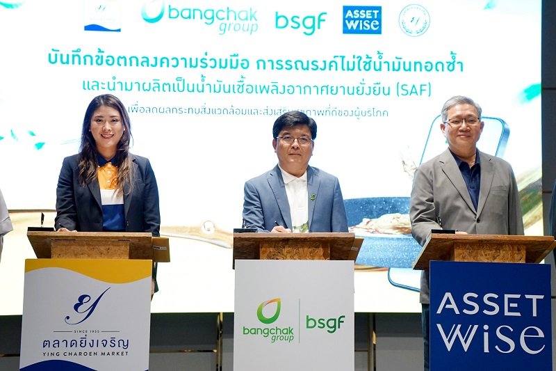 นายนิพนธ์ เลิศทัศนีย์ ผู้ช่วยกรรมการผู้จัดการใหญ่ สายงานบริหารโครงการ วิศวกรรมและโลจิสติกส์ กลุ่มธุรกิจโรงกลั่นและการค้าน้ำมัน และกรรมการคณะผู้บริหาร บีเอสจีเอฟ กล่าวว่า “ความร่วมมือในครั้งนี้สะท้อนพลังของภาคธุรกิจที่มีเป้าหมายร่วมกันในการขับเคลื่อนสังคมไทยไปสู่ความยั่งยืน ผ่านโครงการ Fry to Fly และการรณรงค์ไม่ทอดซ้ำ ที่มุ่งจัดการน้ำมันปรุงอาหารใช้แล้วอย่างเป็นระบบ ที่ไม่เพียงช่วยลดผลกระทบต่อสิ่งแวดล้อม แต่ยังสร้างคุณค่าใหม่ให้กับของเสีย โดยนำไปผลิตเป็นน้ำมันเชื้อเพลิงอากาศยานยั่งยืน หรือ SAF ที่เป็นพลังงานสะอาดแห่งอนาคต ผมมีความยินดีที่ได้เห็นการยกระดับโครงการด้วยการจัดเก็บและติดตามด้วยเทคโนโลยีดิจิทัล ต่อยอดให้ตลาดยิ่งเจริญเป็นต้นแบบของภาคเอกชนในการขับเคลื่อนเศรษฐกิจหมุนเวียนควบคู่กับการส่งเสริมสุขภาพผู้บริโภค ในขณะเดียวกันก็มีส่วนร่วมในการสร้างความยั่งยืนให้กับสังคม ประเทศ และโลกในภาพรวม ขอขอบคุณตลาดยิ่งเจริญที่เปิดพื้นที่และร่วมสนับสนุนให้โครงการเกิดขึ้นจริง และแอสเซทไวส์ ที่พัฒนาแพลตฟอร์มดิจิทัลเพื่อสร้างแรงจูงใจให้ผู้ประกอบการเข้ามามีส่วนร่วม ซึ่งผมเชื่อมั่นว่านี่จะเป็นจุดเริ่มต้นสำคัญในการขยายผลสู่พื้นที่อื่น ๆ และร่วมสร้างการเปลี่ยนแปลงอย่างยั่งยืนให้กับประเทศ”