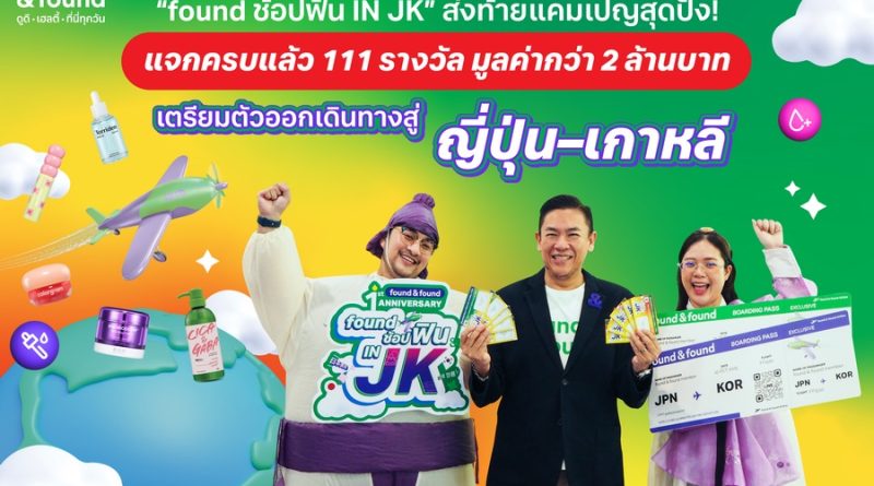 “found ช้อปฟิน IN JK” ส่งท้ายแคมเปญสุดปัง แจกครบแล้ว 111 รางวัล มูลค่ากว่า 2 ล้านบาท เตรียมตัวออกเดินทางสู่ญี่ปุ่น–เกาหลี ไปฟินกันแบบจัดเต็ม!