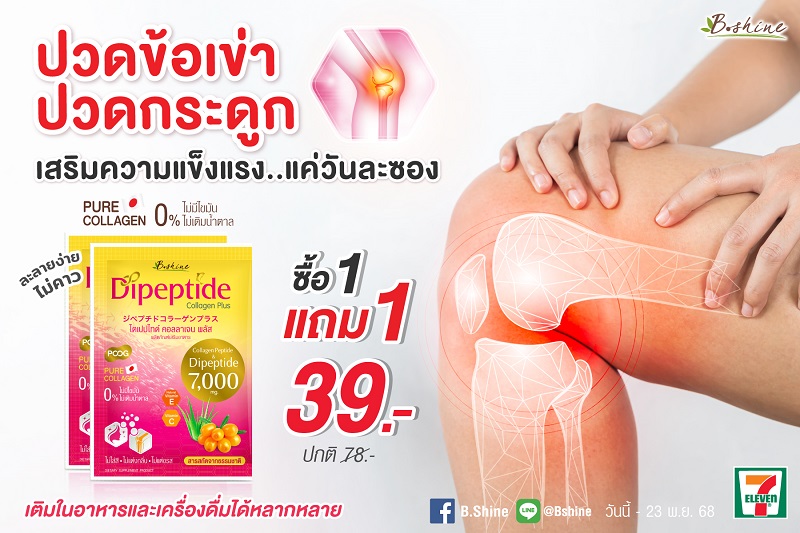 “บีไชน์ ไดเปปไทด์ คอลลาเจน พลัส” คอลลาเจนคุณภาพดีจากญี่ปุ่น เพื่อการดูแลผิวและร่างกายอย่างครบวงจร โปรสุดคุ้ม 1 แถม 1 ซอง เพียง 39 บาท ที่เซเว่น อีเลฟเว่น