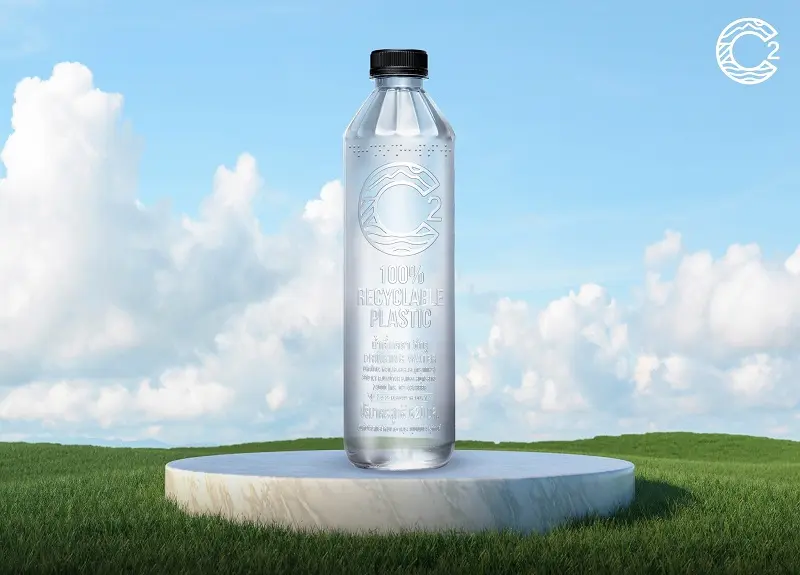 นางสาวธัญรัศม์ จิรฐิติเกียรติ ประธานกรรมการบริหาร บริษัท ซี ดริ้ง จำกัด เปิดเผยว่า แนวคิดน้ำดื่มไร้ฉลากของ C2 เริ่มต้นจากการตั้งคำถามเชิงโครงสร้างต่ออุตสาหกรรมว่า ในเมื่อฉลากพลาสติกคือหนึ่งในต้นเหตุของปัญหาขยะ เหตุใดจึงยังถูกมองเป็น “สิ่งจำเป็น” ของบรรจุภัณฑ์น้ำดื่ม คำถามดังกล่าวนำไปสู่การออกแบบขวดที่ไม่ใช้ฉลากตั้งแต่กระบวนการผลิตแรกเริ่ม ส่งผลให้บรรจุภัณฑ์สามารถเข้าสู่กระบวนการรีไซเคิลได้อย่างมีประสิทธิภาพ ลดขั้นตอนการคัดแยก ลดต้นทุนในระบบจัดการขยะ และเพิ่มมูลค่าวัสดุรีไซเคิลในห่วงโซ่อุตสาหกรรมโดยรวม