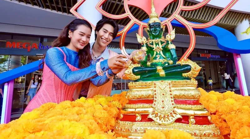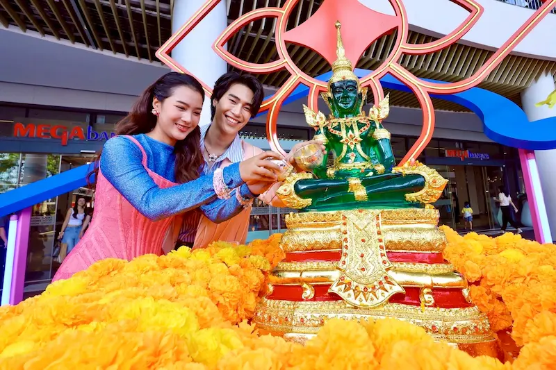 เปิดประสบการณ์ความม่วนจึ้งรับปีใหม่ไทยตั้งแต่ก้าวแรกกับแลนด์มาร์กสุดสะดุดตา “ศาลแมวเรียกทรัพย์” ที่เมกาบางนาเนรมิตขึ้นอย่างสร้างสรรค์ โดยได้แรงบันดาลใจจาก “แมววิเชียรมาศ” อีกหนึ่งสัตว์ประจำชาติไทยและสัตว์มงคลที่ผู้คนรัก ถ่ายทอดออกมาในรูปแบบแมวกวักสีสันสดใสหลากหลายคาแรกเตอร์ พร้อมต้อนรับผู้มาเยือนอย่างสนุกสนาน กลายเป็นจุดเช็กอินที่ทั้งเสริมความเป็นสิริมงคลและเติมสีสันให้บรรยากาศสงกรานต์คึกคักตั้งแต่ทางเข้า พร้อมเก็บภาพความประทับใจรับพลังบวกต้อนรับปีใหม่ไทย นอกจากนี้ ยังมีจุด “สรงน้ำพระแก้วมรกต” พระพุทธรูปคู่บ้านคู่เมืองที่เปี่ยมด้วยพุทธคุณด้านความเป็นสิริมงคล โชคลาภ และความร่มเย็นเป็นสุข ให้ทุกคนได้ร่วมสืบสานประเพณีไทยและเสริมมงคลรับศักราชใหม่ เพื่อเริ่มต้นปีใหม่ไทยด้วยความสุข ความปัง และความร่มเย็นตลอดปี